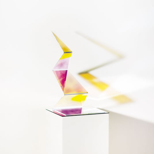 Starting in 2005, a new artistic phase began, focusing on painting, object art, and spatial installations. In 2008, he founded the “Kunstlabor” (Art Lab) in Zurich, which was expanded in 2011. He began experimenting with materials such as steel and dichroic acrylic glass.