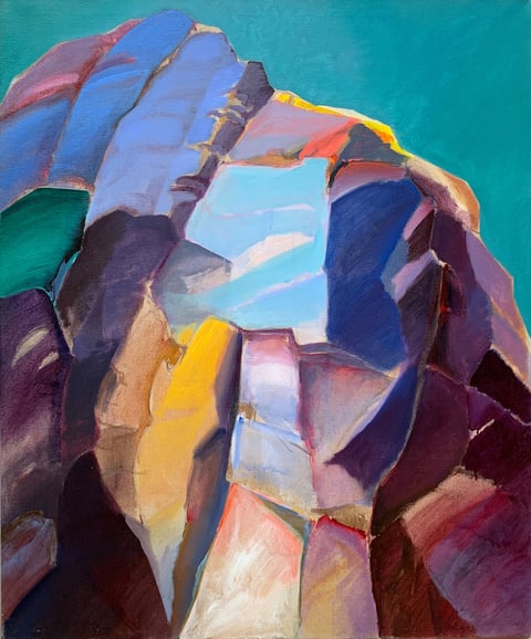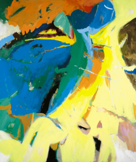 This consistent formal language is particularly evident in his painted interpretations of what he called the "Rock Images" (Felsbilder). Eschewing decorative embellishment and illustrative detail, Ganzer developed a reduced yet deeply evocative visual vocabulary. Broad, monochrome bands of color, layered one over another, formed abstracted representations of rock formations. His palette ranged from light blues and yellows to deep violets and greens.